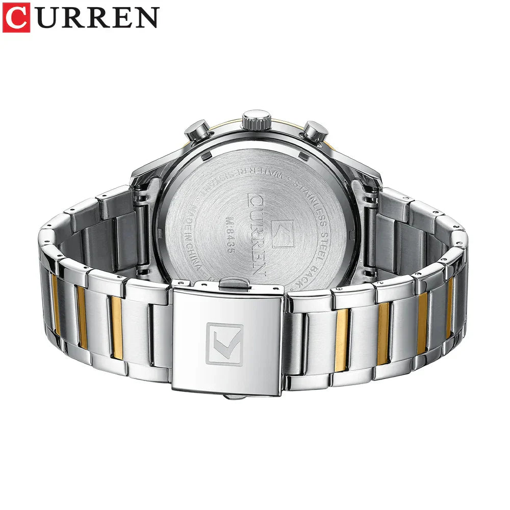 Elevate your style with this premium CURREN men's quartz watch. Designed with a sleek stainless steel strap, date display, and chronograph functionality. Ideal for business, casual, and sport use. Durable, waterproof, and a perfect gift choice.